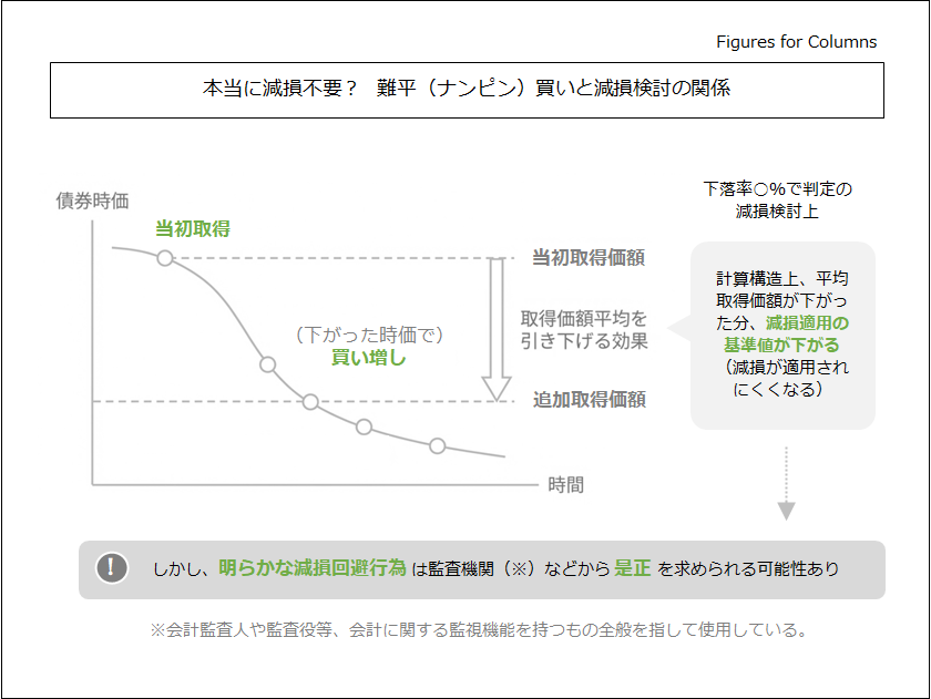 時価下落した銘柄は追加取得すれば減損対象でなくなる? 国債等債券の難平(ナンピン)買いと減損との関係