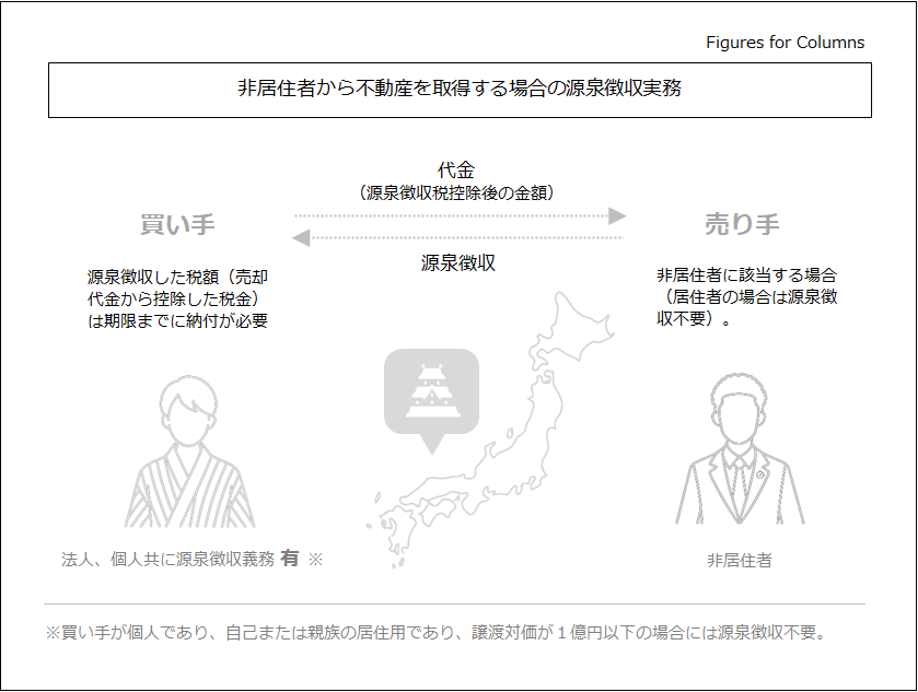おそらく不動産取引の大半は居住者同士の取引であると思いますが、この取引相手が非居住者になると源泉徴収義務が必要になります。源泉徴収義務は取得者側にあり、源泉徴収漏れが起こり得る点に注意が必要です。