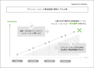 実際には、企業の成長段階や市場環境、投資家の期待値などにより、定数化できない限界が存在しており、過大な期待に基づく高いバリュエーションは、そもそも資金調達を実行できないか、次回ラウンドで調達を困難にするリスクを孕みます。