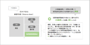 貸借対照表中、資産と負債はCR換算するのに対し、純資産の部はCR以外のレートを使用することがあります。