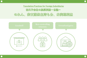 在外子会社の個別決算、連結決算について複数回に分けて解説をしてきましたが、今回は、実際に実務上あたると悩ましい「のれんの換算」、「非支配株主持分の取扱い」、「未実現利益の消去」の各論について解説します。