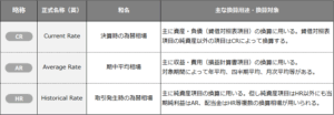 | ④ | 評価・換算差額等 | … | CR(基本的に決算時の為替相場を用いる) |